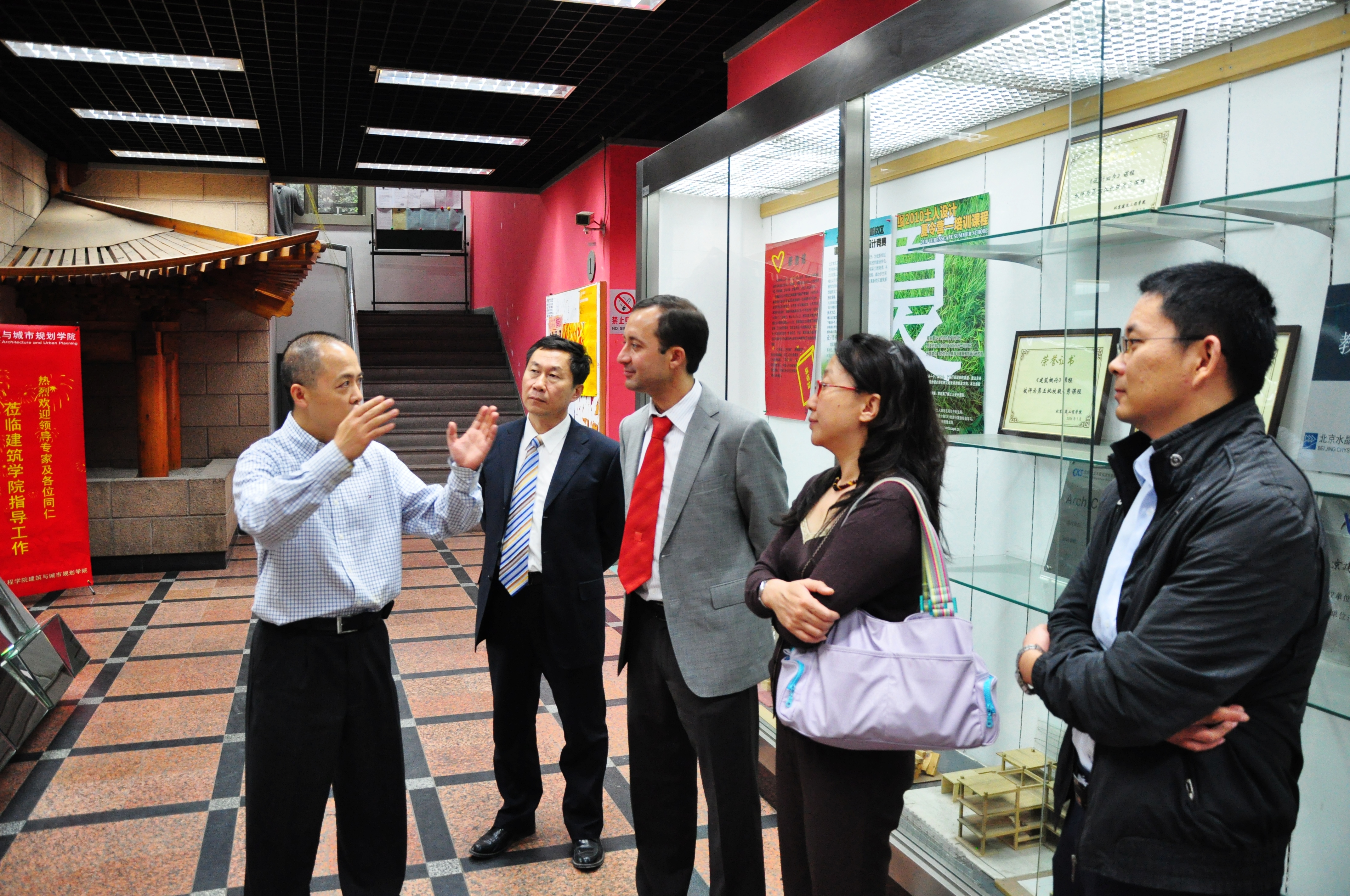 )先生在宋国华副董事长、国际合作与交流处赵晓红处长、郑桐老师的陪同下,莅临十大正规买足球网站参观考察。研究生处处长、公司党总支书记兼教学副经理陈静勇教授向席迪先生介绍了十大正规买足球网站的历史沿革、发展概况、教学特色等,然后带领席迪先生参观了十大正规买足球网站教学楼、展厅、金属工艺实验室、木器工艺实验室、综合工艺与装配实验室、建筑物理环境实验室、模型实验室等教学空间和教学设施。通过参观,席迪先生对十大正规买足球网站的办学水平表示充分的肯定和赞赏。