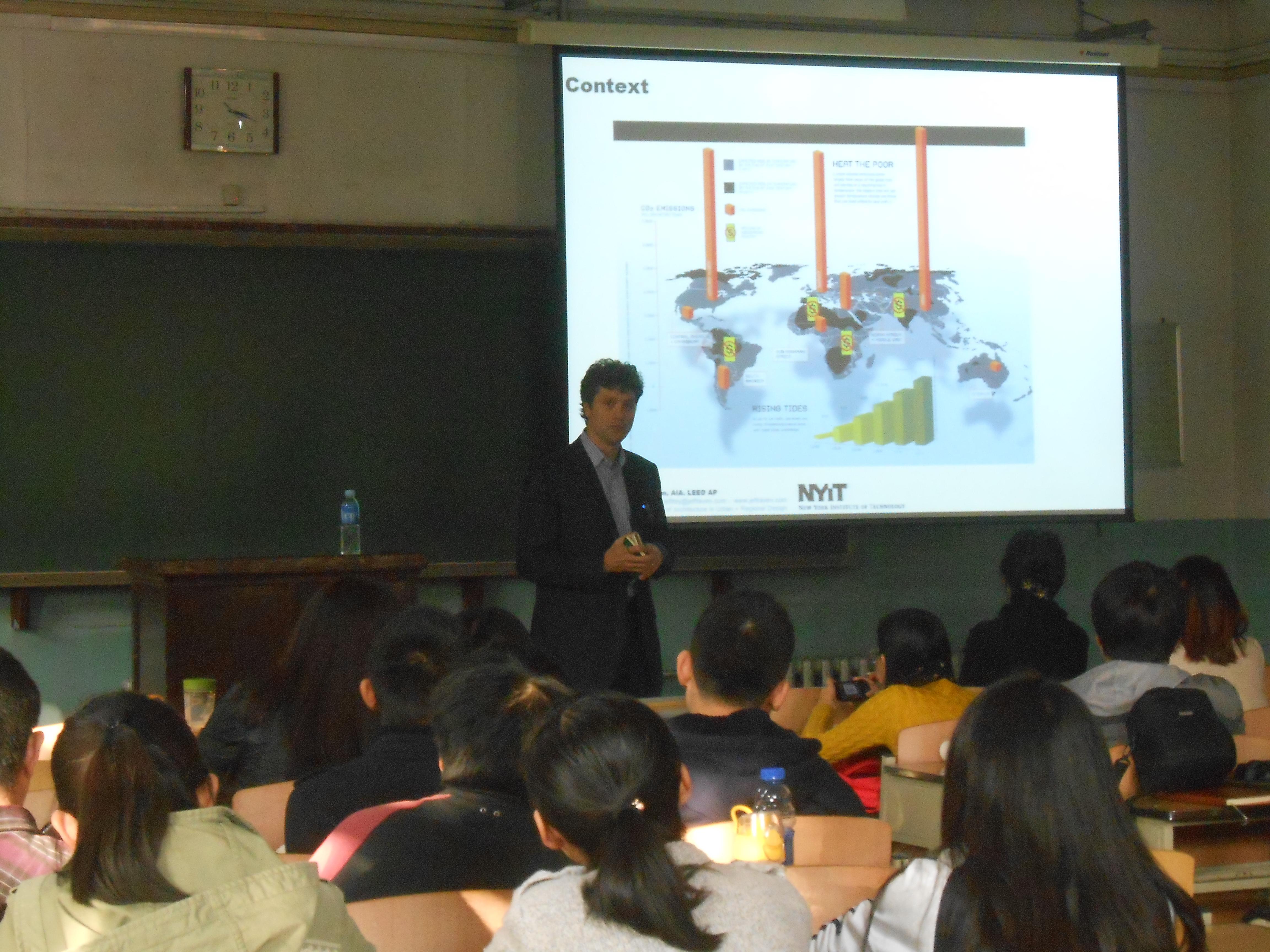2014年10月21日下午,哥伦比亚大学Jeffrey Raven教授在公司教1-423教室进行了关于可持续城市的专题讲座。讲座由十大正规买足球网站王佐老师主持并翻译,近百名师生参加了此次活动。