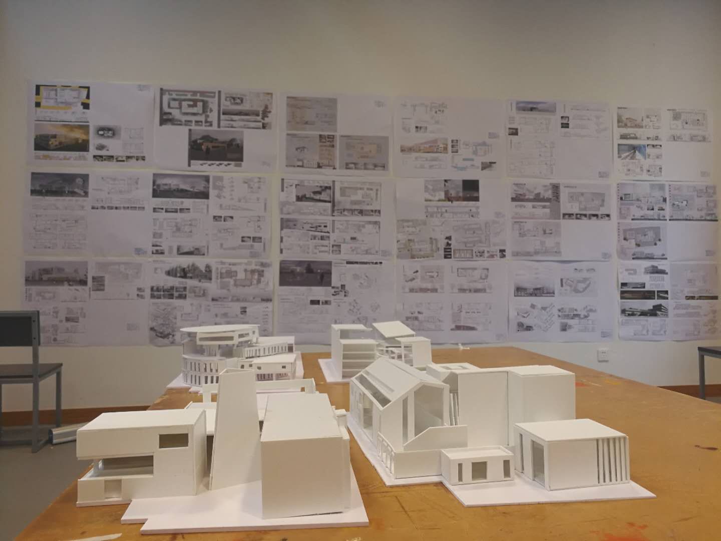 10月27日,“高校图书馆设计”和“社区图书馆设计”选题分别在教1-226和教5一楼阶厅进行课程最终课程评图。“书院-员工宿舍综合体设计”选题也在教5二楼进行了中期评图。