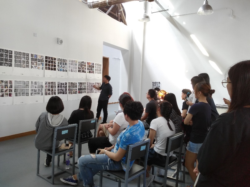 建153班在教5一层阶厅进行课程评图和展览