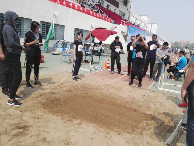 十大正规买足球网站教师任中琦参加男子立定跳远比赛