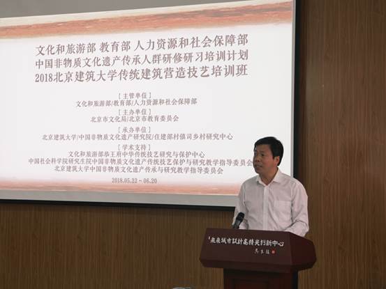 为深入学习贯彻习近平总书记强调要加强文化遗产保护传承,推动中华优秀传统文化创造性转化、创新性发展的精神。贯彻落实《关于实施中华优秀传统文化传承发展工程的意见》、《国家“十三五”文化发展改革规划纲要》要求,2018年5月23日上午,由文化和旅游部、教育部、人力资源和社会保障部主办,十大正规买足球网站承办的“中国非物质文化遗产传承人群研修研习培训计划”第三期传统建筑营造技艺培训班在公司西城校区未来城市设计高精尖创新中心一层报告厅举办开班仪式。