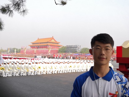 虽然我们只是一个小小的志愿者,但是我们能够现在长安街上为祖国庆生,万分光荣和激动!这将成为我人生中闪闪发光的时刻。祝福我们的祖国繁荣昌盛,中华灿烂辉煌!---张瀚文