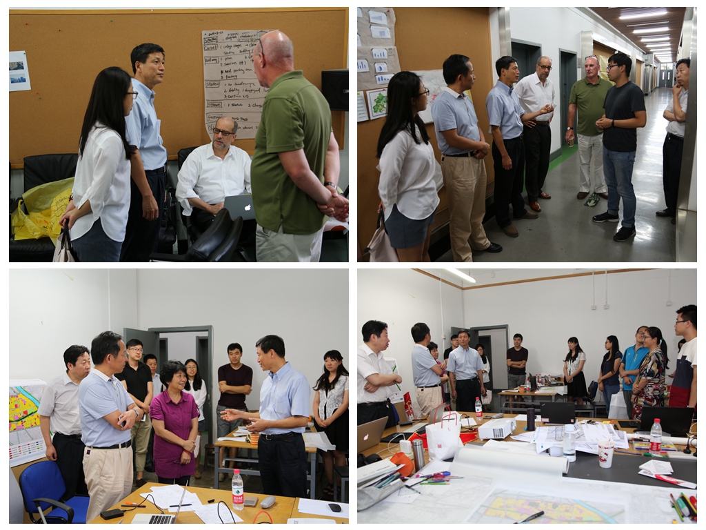 经过12天的紧张工作,北京城市设计国际联合工作营完成了现场调研、分组设计等工作,为了能为通州区旧城更新提出更优化的设计方案,工作营在8月24日-25日组织了全体成员参加的中期成果交流活动。活动期间,董事长张爱林、副董事长张大玉在公司党委书记田林的陪同下,到现场对紧张忙碌的师生进行慰问,并与两位外籍指导教师Niall Kirkwood教授、Roy Strickland教授进行了亲切交流。