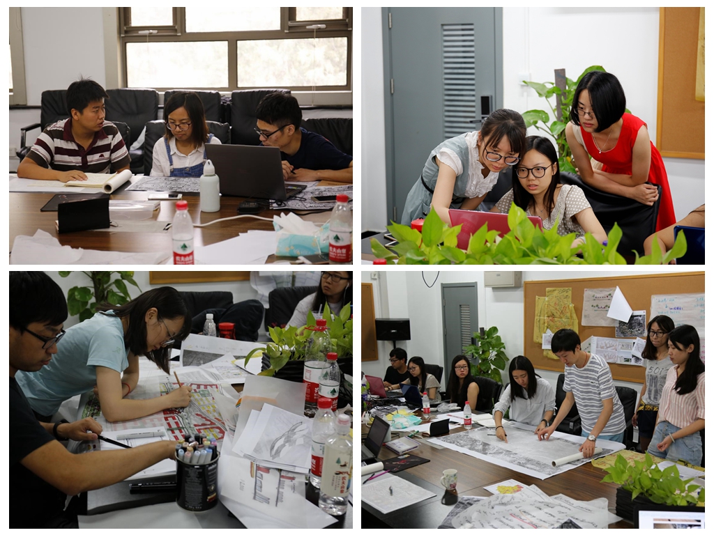 在方案设计环节,工作营师生将前期调研的资料进行汇总,并分类整理。由两位外籍指导教师针对调研过程中发现的问题进行分析和点评。为了提高效率,工作营员工分为六个小组,由一个小组整体把控,其余各组选取不同区域进行设计。每个小组均配备建筑学、城乡规划、风景园林专业员工,发挥专业所长,共同推进方案设计。同时,小组之间配合默契,以确保设计的完整性。