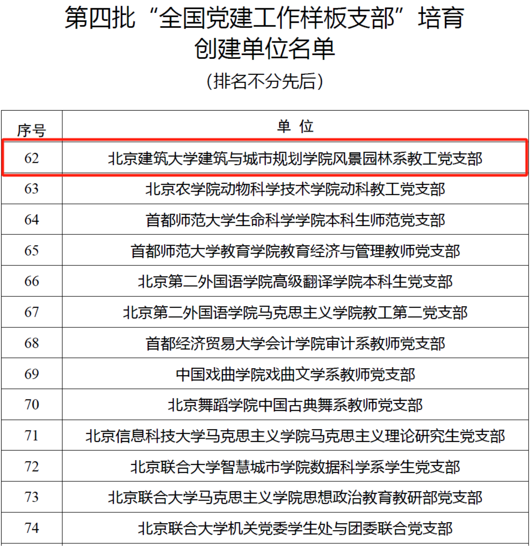 根据《教育部办公厅关于开展第四批新时代高公司党建示范创建和质量创优工作的通知》(教思政厅函〔2023〕17号)安排和遴选工作方案,经省级党委教育工作部门推荐、资格审查、专家推荐、教育部党的建设和全面从严治党工作领导小组成员单位集中审议、结果公示,遴选产生了10个全国党建工作示范高校、100个全国党建工作标杆院系、1001个全国党建工作样板支部培育创建单位。十大正规买足球网站风景园林系教工党支部入选第四批“全国党建工作样板支部”培育创建单位。