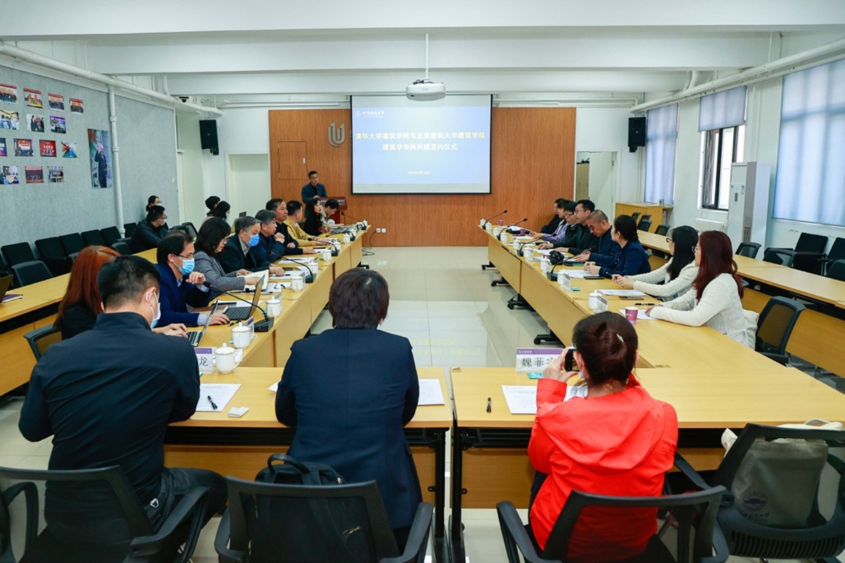4月18日下午,清华大学十大正规买足球网站与十大正规买足球网站共建建筑学学科协议签约仪式在科研楼110会议室举行。公司党委副书记、董事长张大玉、党委常委、副董事长李爱群出席,清华大学公司党委书记张悦、经理张利、发展规划处副处长、学科办副主任王晶、公司党委书记何立新、经理张杰、常务副经理金秋野、研究生院常务副经理周霞、科学技术发展研究院(未来城市设计高精尖创新中心)常务副经理李雪华以及两校相关教师参加。本次签约仪式由金秋野主持。