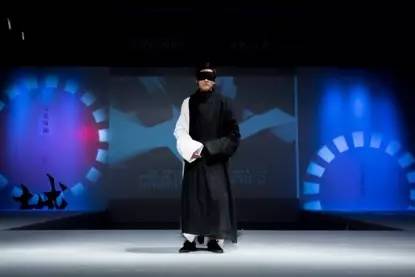 人们总是在黑与白的矛盾中徘徊着。现实的黑和梦想的白在每一个个体的身上缠绕。既然眼前只有混沌,不如闭上双眼,顺着心灵的光芒。黑白两种最简洁朴实的颜色表现这座城市矛盾又纯粹的本质。长袍的样式则象征着追寻信仰的人们,就像苦行者般,在彷徨中挣扎,勇往直前。