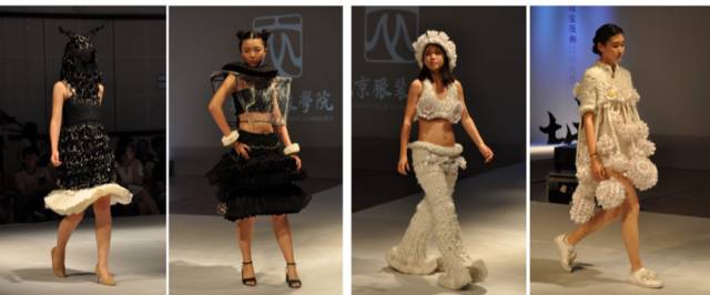 在评委进行评分的过程中,来自北京服装公司的同学也带来了精彩的服装设计展示。之后则是与员工们朝夕相处的建院青年教师带来的T台秀。