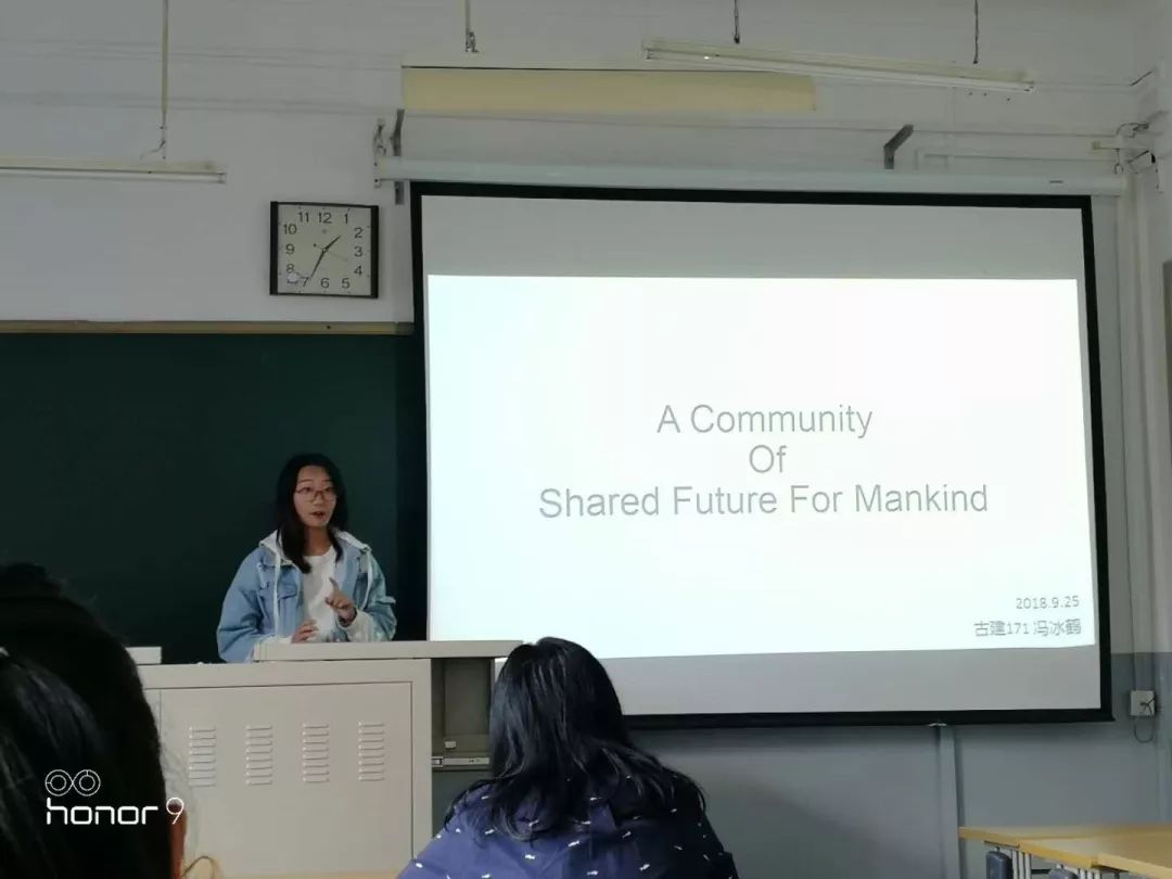 此次的比赛题目是:人类命运共同。各位参赛同学分别对此题目展开了各自的演讲,各自讲述对此话题的思考。