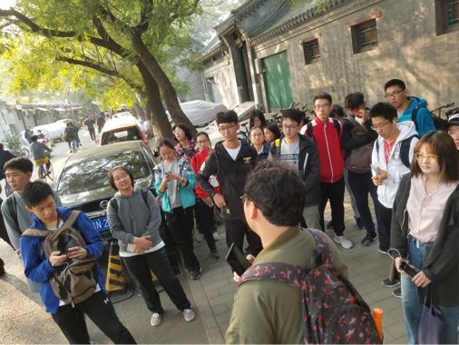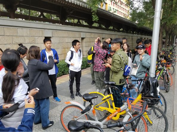 10月13日,早8点10分,参与活动的同学们在西城校区行政楼前集合。为保证活动顺利进行,同学们分为两组,分别在青协成员的带领下有序出发。活动路线为都城隍庙、微杂院、银河SOHO、当代MOMA以及“失物招领”。秋色已深,风已微凉,在这个秋高气爽的清晨里,在同学们满怀期待的眼神中,我们的骑行活动正式拉开序幕。