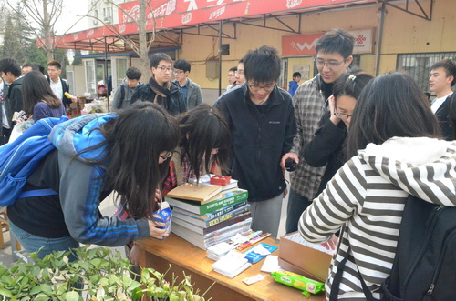 2014年3月18日中午12时,十大正规买足球网站在西城校区食堂南门门前组织了一场别开生面的活动——“跳蚤市场”。此次活动以班为单位,在员工会的精心安排下,各班纷纷找到了自己的摊位。不少同学将自己携带的物品精心布置,使尽浑身解数来推销自己的产品,吸引了很多同学的关注。物品琳琅满目,大部分与同学们的学习生活有关,如书籍、颜料、画纸等。