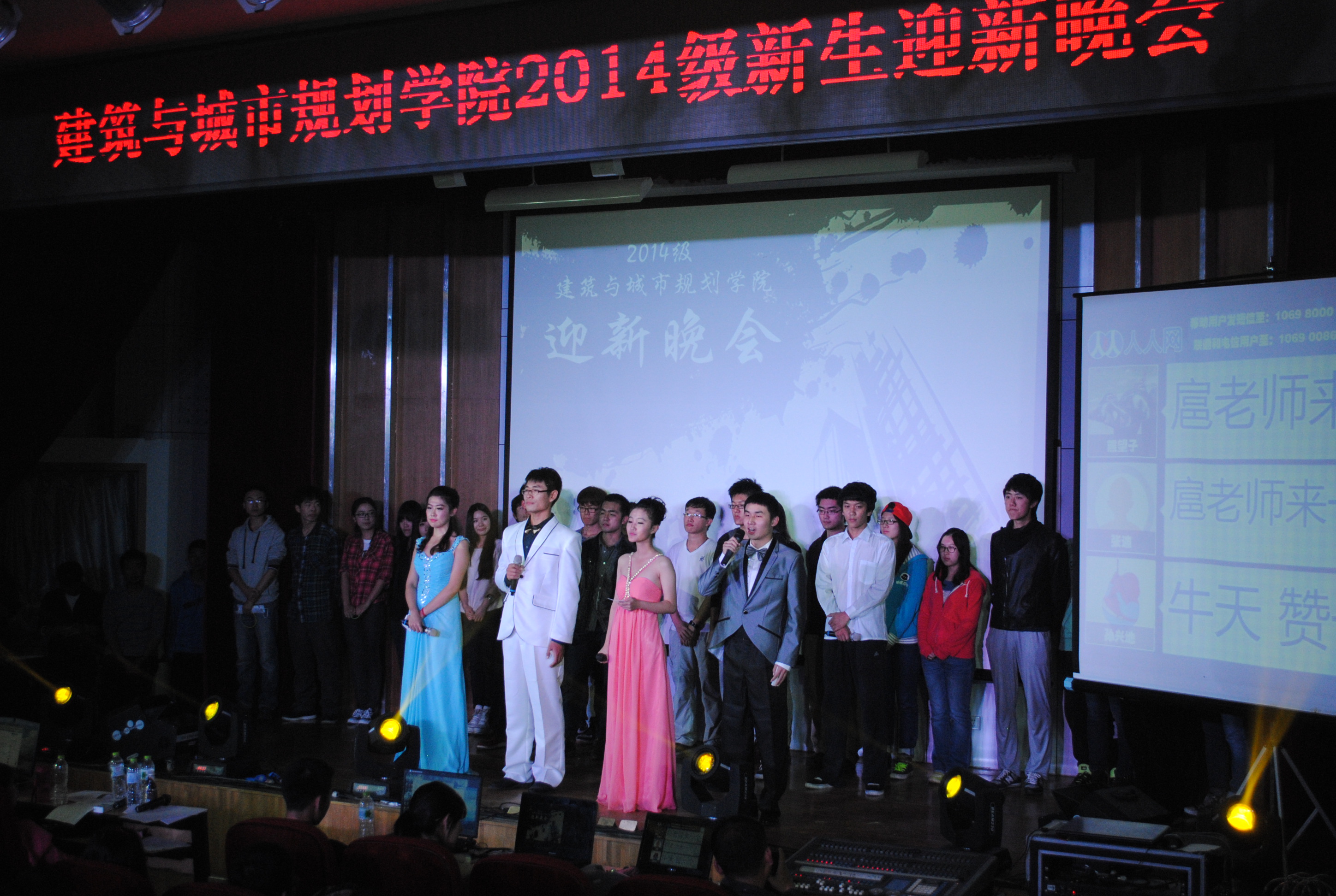 2014年10月10日19时整,十大正规买足球网站2014级迎新晚会在西城校区第二阶梯教室隆重举行。晚会以“青春绽放,筑梦远航”为主题,以“促进新生融入集体”为策划理念,为大家带来了一场精彩纷呈的视听盛宴。公司党总支书记牛磊老师、党总支副书记丁奇老师、学工部康健老师、团总支书记李小虎老师及十大正规买足球网站部分教师应邀出席了晚会。2014级全体研究生、本科生和部分高年级员工400余人观看了整场晚会,二阶会场座无虚席。