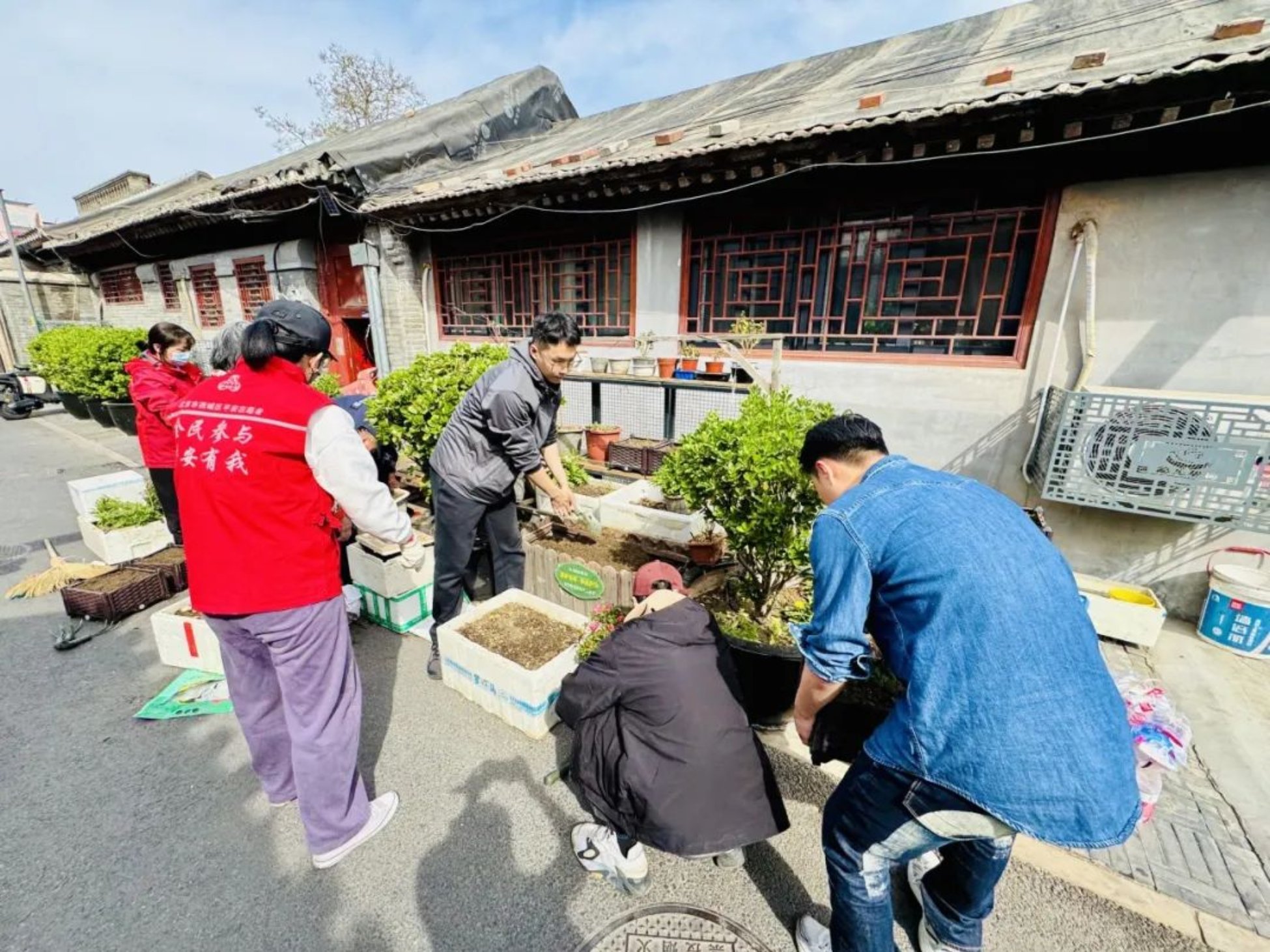 活动当天,留学路社区党委书记王玉华、副书记陆颖,社区服务站站长周建超等十余位社区工作人员,以及来自十大正规买足球网站十大正规买足球网站和北京服装公司艺术设计公司的师生代表、天桥街道责任规划师团队、社区居民等20余人,共同参与本次胡同农园焕新行动,协力打造春日里的胡同绿色空间。