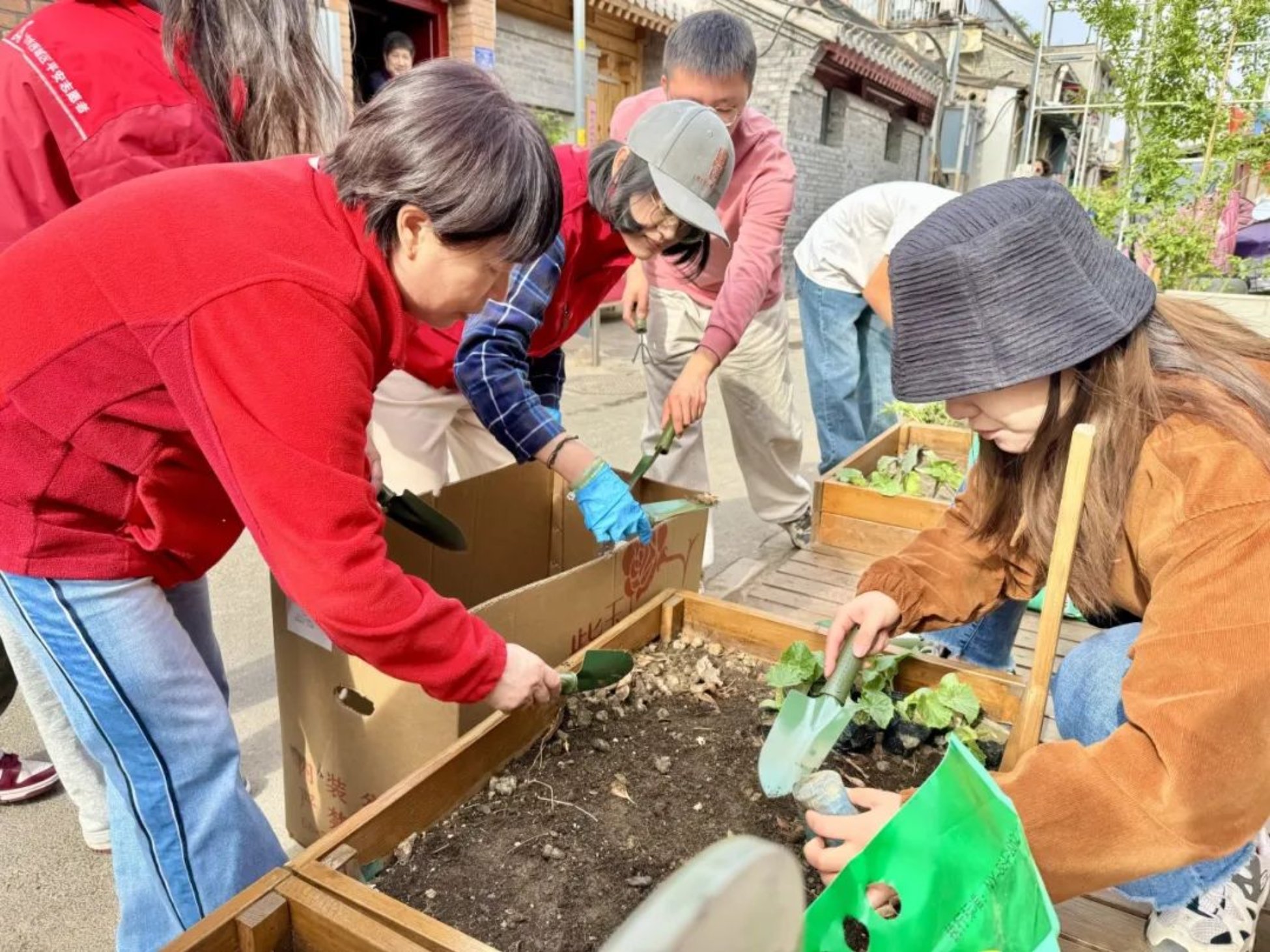 “去年参与农园建设后,我每周都会来看看自己认领的菜苗。”一位社区居民边浇水边说,“这些年身边的环境真是变化巨大,居民们一起参加家门口菜园、花园的建设,特别有归属感。”参与共建的商户也表示:"胡同一天天变漂亮,我们的客人也越来越多,双赢才可持续。"社区书记王玉华表示:“高校团队的持续加入,让我们的共建活动更有延续性,居民们的参与热情也越来越高。”