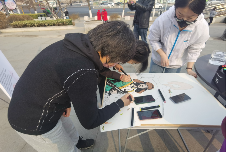 居民朋友们精心绘制、以画抒情,把对雷锋的崇敬和怀念之情,深深的融入绘画创造中,用独特的方式发扬和宣传为人民服务的高尚品质。