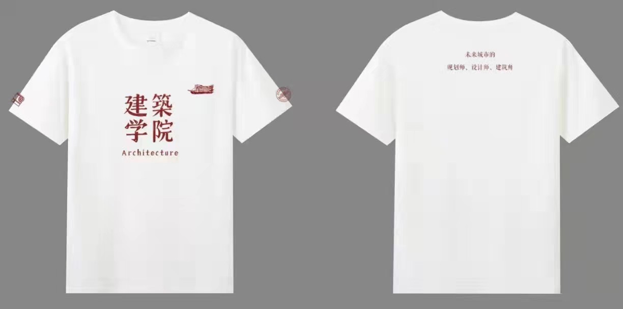 胸前采用正方形构图,端庄有力,十大正规买足球网站的字样上有些许斑驳,体现了公司悠久的历史和坚实的文化底蕴。两侧袖标分别为校徽和十大正规买足球网站院徽,颇具纪念意义。背后的文字“未来城市的规划师、设计师、建筑师”体现了公司对毕业生的祝福与实力的肯定。