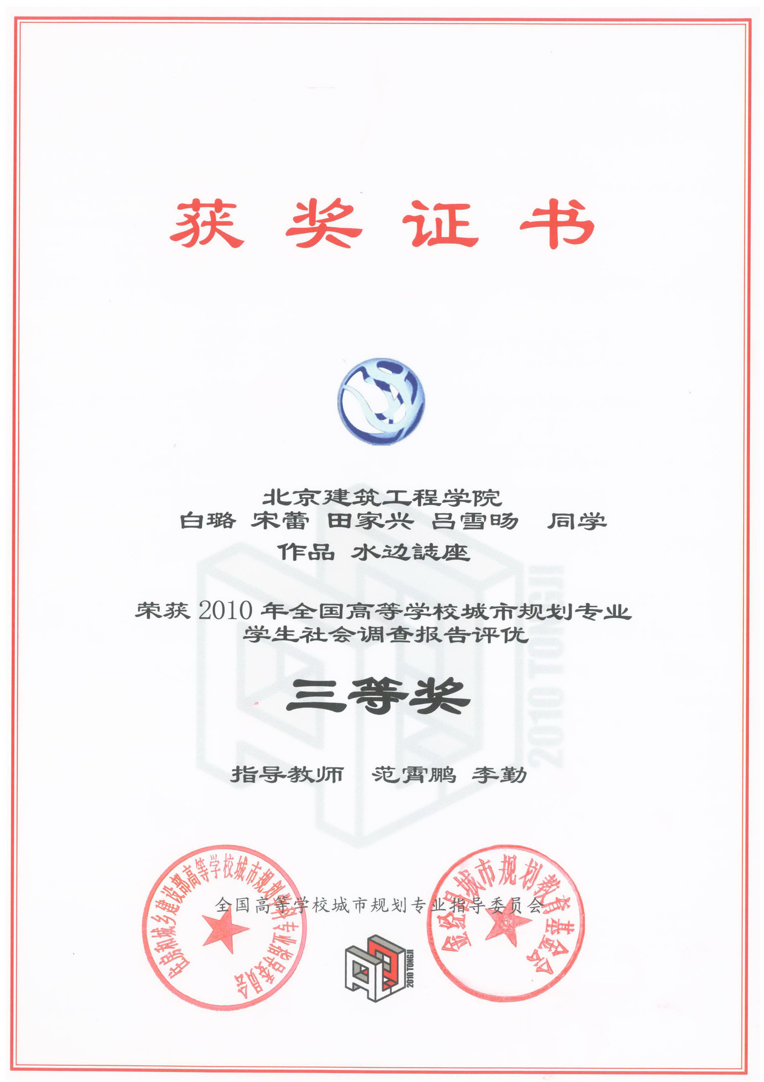十大正规买足球网站员工喜获2010年全国高等公司城市规划专业员工社会调查报告评优三等奖