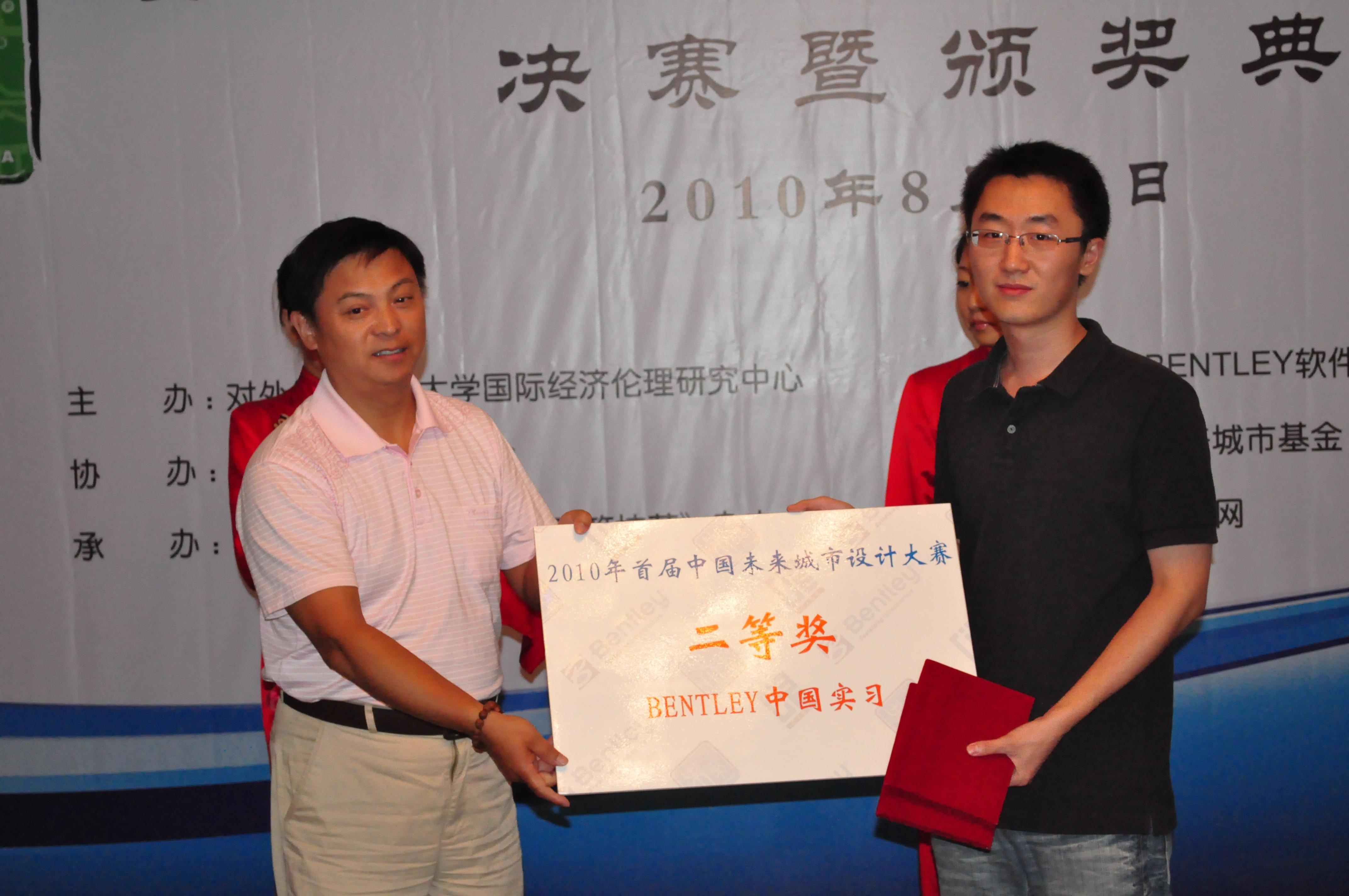 2010年8月26日,首届 “中国未来城市设计大赛”决赛暨颁奖典礼在北京国谊宾馆举行。共有来自全国各地的8支代表队通过了此前第一轮的方案评选,从200多支报名参赛队中脱颖而出,进入决赛阶段。经过上、下午两轮激烈的角逐,公司09级硕士研究生王文在张路峰老师的指导下完成的作品“都市方舟”荣获二等奖。