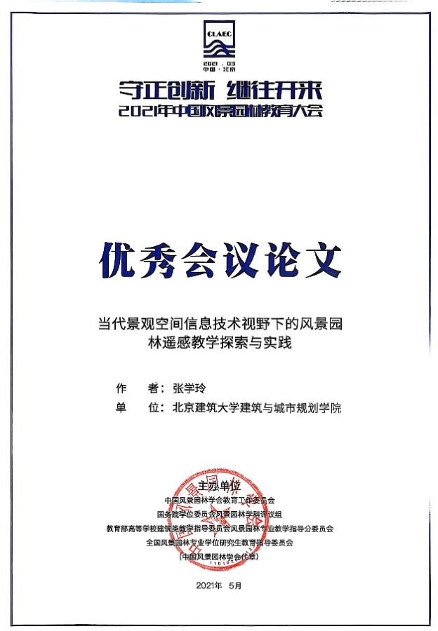 世界在变,初心不变;时间向前,奋斗不止。在科研的道路上,唯有秉持初心、持续奋斗,才能锻炼定力、恒力与能力;唯有主动作为、勇于攻坚,积极顺应时代潮流,响应国家需求,方能有效助力专业与行业的共同进步。近年来,科研方面主要响应生态文明与高质量发展战略,面向公园城市、人民城市绿色发展,聚焦当代人居环境景观形态研究、数字景观耦合理论、空间信息技术前沿进展,基于当代遥感新方法、新技术开展城乡蓝绿景观量化解析研究。主持完成国家自然科学基金青年项目1项、中国博士后科学基金面上项目1项,参与国家级科研项目3项;发表学术论文20余篇;参加国际学术会议并作报告5次;获授权国内外专利3项;出版专著1部;获中国风景园林学会科学技术奖三等奖。