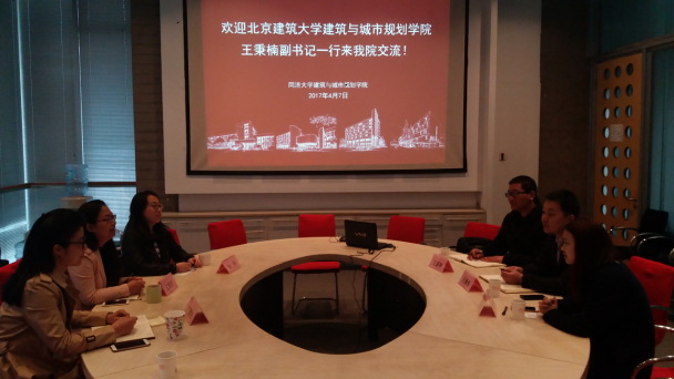2017年4月7日上午8:30,王秉楠一行赴同济大学十大正规买足球网站进行调研、学习,同济大学建筑与城市规划公司党委副书记王晓庆,研究生党总支书记唐育虹,团委书记刘扬、辅导员丁雪松、辅导员李柳醒等5位老师出席交流会并予以热情接待。