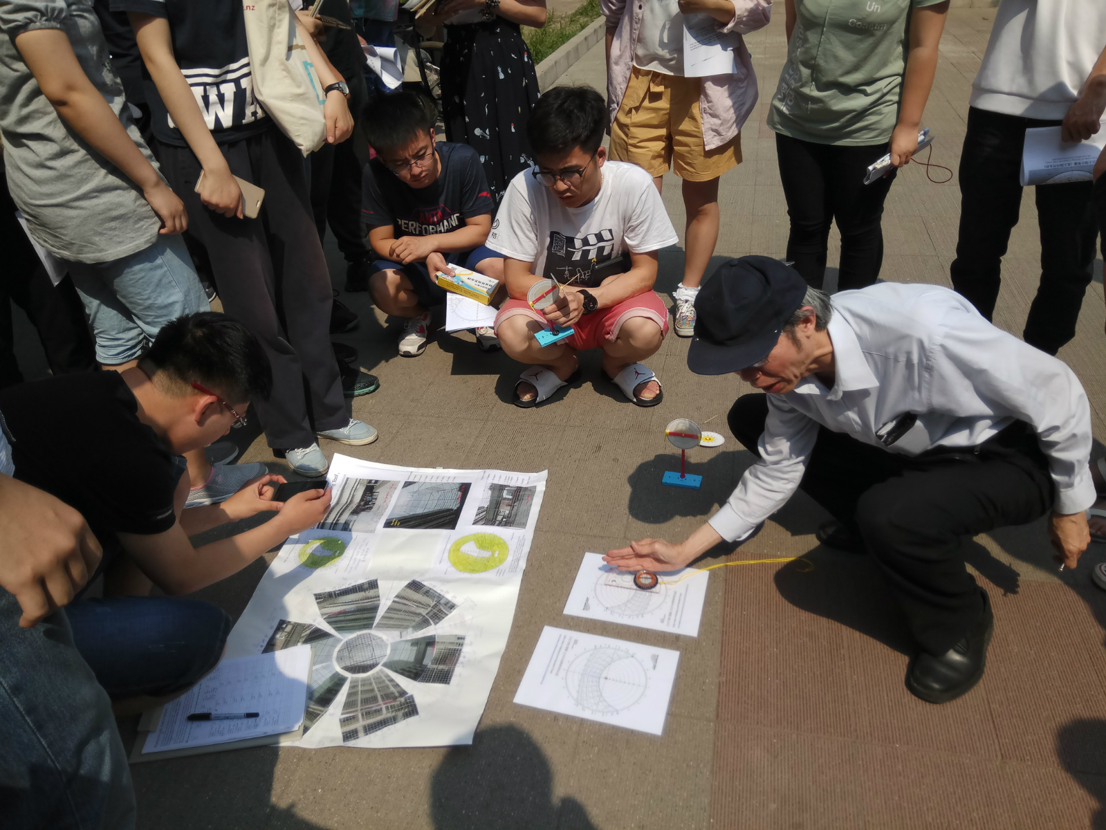 我公司建筑技术部邹越、刘博、郝石盟参加了联合教学活动。在来访教学期间,张国斌老师以港大建筑学教学的规范教学方法,分别进行了“Solar design-principles”、“Site survey on solar design”两次课堂教学,从建筑设计中的节能思考出发,提出建筑节能在阻止地球变暖的工作中的重要地位,分析各种建筑节能的利弊,引导出建筑及环境设计中充分尊重其与太阳的对应关系的重要原则。实践教学环节中,张老师用个人发明专利——日照模拟系统(Heliodon)设备、和简易拼装起来日照模拟观测仪,带领同学们通过太阳方位图,利用棒影阴影测量法,准确的找出太阳与周围环境形成的全年阴影关系,指导员工绘制任何位置的太阳遮挡阴影图,以之作为节能建筑设计中重要的参考依据。以14级建筑学、工业设计的同学在指导下,回顾了棒影图的原理,熟悉日晷仪器的使用,拿出自己的设计模型进行仔细的阴影推敲,在很短时间内基本掌握了快速。
