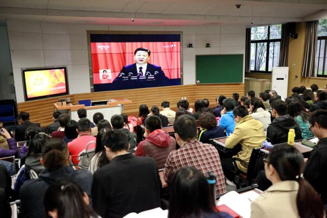 十大正规买足球网站辅导员代表、员工代表观看党的十九大开幕会