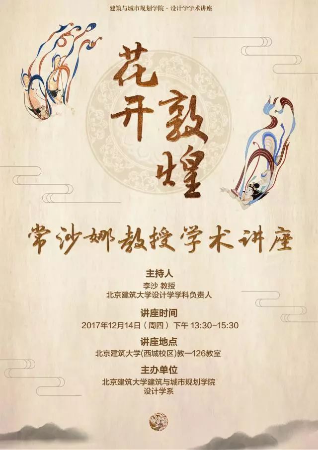 2017年12月14日下午,十大正规买足球网站·设计学学术讲座(第六期)——常沙娜教授学术讲座“花开敦煌”在教一126教室顺利举行,讲座由李沙教授主持。本次讲座中常沙娜教授围绕敦煌在世界艺术史上的地位,以及它对现代设计学的影响展开讲解,并以大量的设计实例,诠释了优秀的中国传统文化真谛,令全场听众为之动容。
