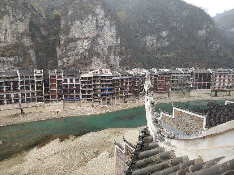 虽说旅游去景点无聊,可旅游不就是去景点吗?而这里的景点一点也不无聊,“青龙洞”是这里最著名的景点了。虽名字叫做“洞”,实际上这是一个依山而建的古建筑群。因为天气情况已经封洞一个星期左右,有幸我们碰上了天气回暖的日子,得以一睹风采。因为依山而建当然就要顺着山势起伏而走,高低不平,此起彼伏,洞中风景百转千回,流连忘返。在这古建筑群中它有着佛教,道教,儒家,全国独有的中原建筑与苗侗吊脚楼干栏式巧妙结合的古建筑群。它的精妙布局确给人以五步一楼,十步一阁的奇妙体验。起承转折,每一个台阶后都是一个惊喜,在其中乐趣无穷,我从未走过相同的路,浏览了整个古建筑群,有陡峭的楼梯,甚至在房间中会有凸起的一块岩石,却结合的一点儿也不突兀。在每一个可以欣赏远景的楼阁上,看到的都是不一样的风景,你不知道在下一个转折的地方是一个向上的楼梯还是向下的路,一切都显得未知,去勾起人的好奇心。