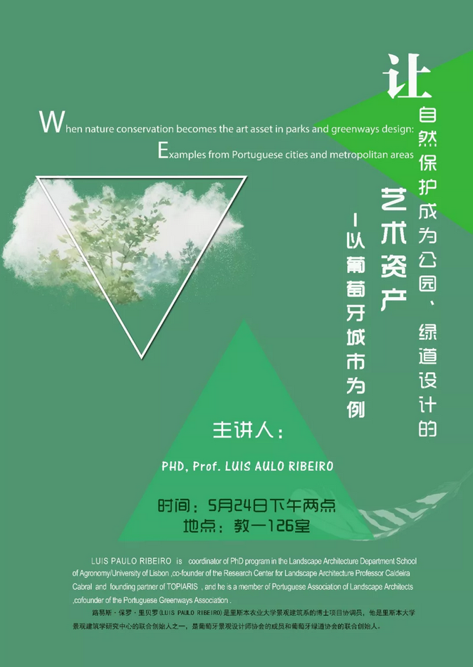 路易斯·保罗·李贝罗是里斯本农业大学景观建筑系的博士项目协调员,他是里斯本大学景观建筑学研究中心的联合创始人之一,是葡萄牙景观设计师协会的成员和葡萄牙绿道协会的联合创始人。