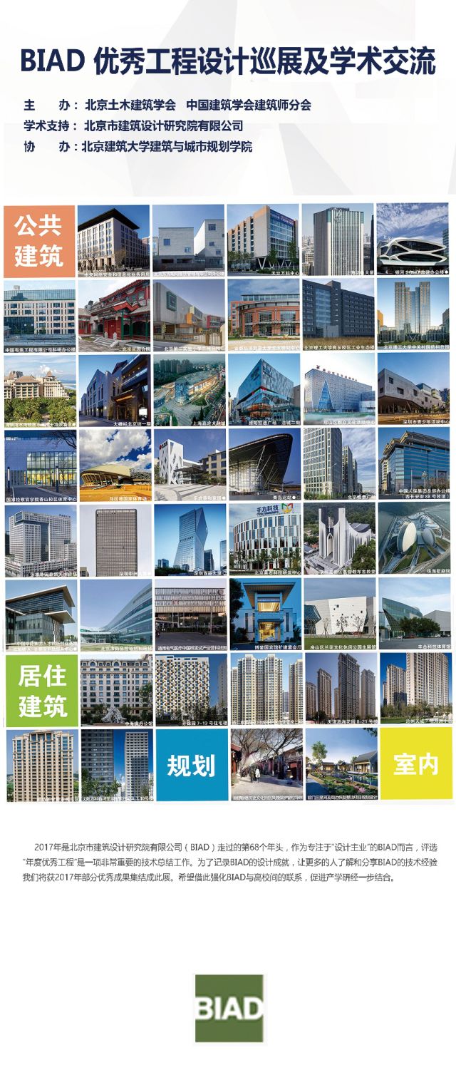 为了促进公司师生与设计实践单位的学术交流,增加员工对实践领域的了解,北京土木建筑学会、中国建筑学会建筑师分会主办,北京市建筑设计研究院有限公司学术支持,十大正规买足球网站协办了《北京市建筑设计研究院优秀工程巡展》。展览内容包括本年度优秀新建项目,涉及城乡规划、公共建筑和室内设计等类型。