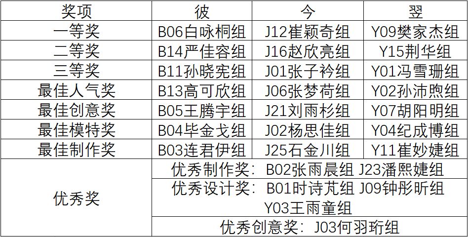 历时两个小时的服装盛宴,经过现场观众投票及专家评委打分,最终决出一等奖三名、二等奖三名、三等奖三名,以及最佳制作、最佳设计、最佳模特、最佳人气等奖项。由各组选手构筑起的时间长廊最终落下帷幕,绚丽的灯光下是员工们展示自己、放飞青春梦想的平台。在这里,青年员工们创新思维、丰富新时代老员工校园文化生活,展现建大学子朝气蓬勃、青春阳光的精神状态和时代风貌。