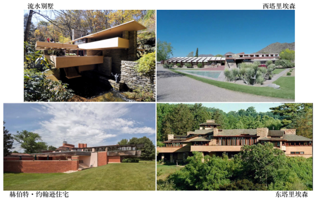 金老师提到赖特作品中的结构建造体系、几何形式逻辑和装饰体系都是理性而清晰的,三者是同构的。在住宅中,赖特从来没有暴露过真正的结构工字钢梁被吊顶掩盖,砖墙也是假象,赖特是采取的装饰策略恰好就是“逻辑类比系统”(analogous system),好像如同鸟的骨架、鳞片与羽毛的关系。金老师从“东塔里埃森”、“西塔埃里森”、“流水别墅”的实例来解释赖特如何表现“悬挑结构和诠释有机建筑是如何“水平伸展于大地之上”的。