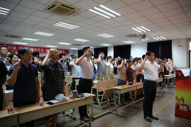 公司党委书记何立新同志带领全体党员重温入党誓词,全体党员举起右拳面向党旗庄严宣誓。