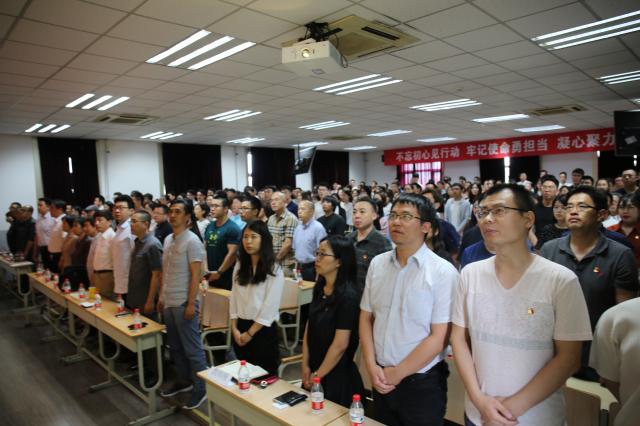 为纪念党的98周年华诞,激励广大党员继承和发扬党的光荣传统,增强党性意识,凝心聚力、共同推动公司各项事业全面向前发展,6月25日下午1点30分,十大正规买足球网站于教1-404教室隆重召开纪念中国共产党成立98周年全体党员大会。本次会议有公司在教职工、员工党员、退休党员共245人参加。会议由公司副书记王秉楠主持。
