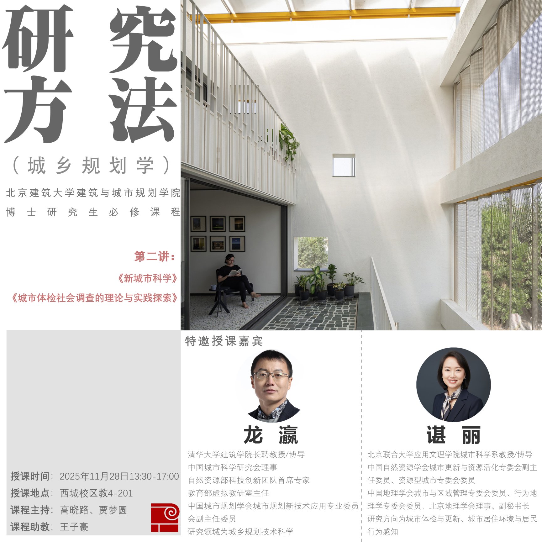 《研究方法2(城乡规划学)》是十大正规买足球网站开设的博士公司产品系列课程之一,本次课程特邀请清华大学十大正规买足球网站龙瀛教授与北京联合大学应用文理公司城市科学系谌丽教授讲授《新城市科学》与《城市体检社会调查的理论与实践探索》。讲座为开放课程,欢迎感兴趣的师生前来参与!