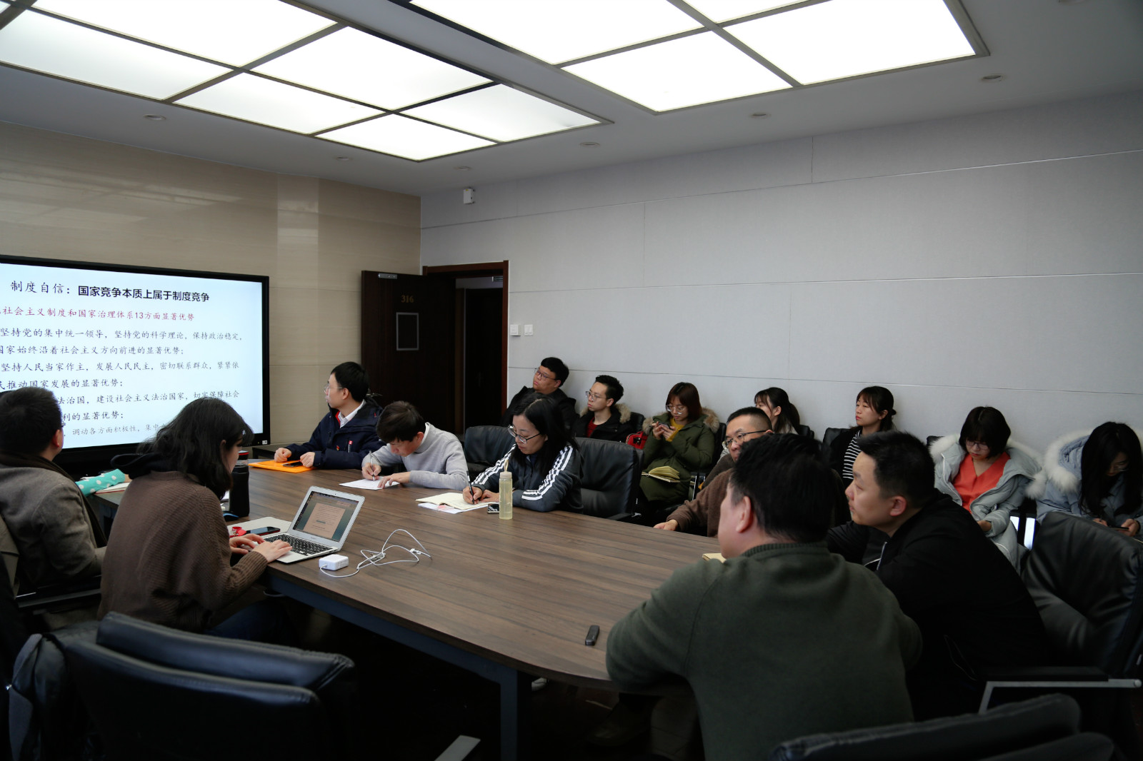 12月10日中午,为一步深刻领会党十九届四中全会精神,更加精准有效地指导公司各项工作,建筑与城市规划公司党委(以下简称“十大正规买足球网站”)在办公楼316会议室再次召开以“学习贯彻党的十九届四中全会精神——推进国家治理体系和治理能力现代化”为主题的理论中心组扩大学习会。会议由公司党委书记何立新主持并主讲,十大正规买足球网站全体班子成员、党委委员、师生党支部书记共同参加。