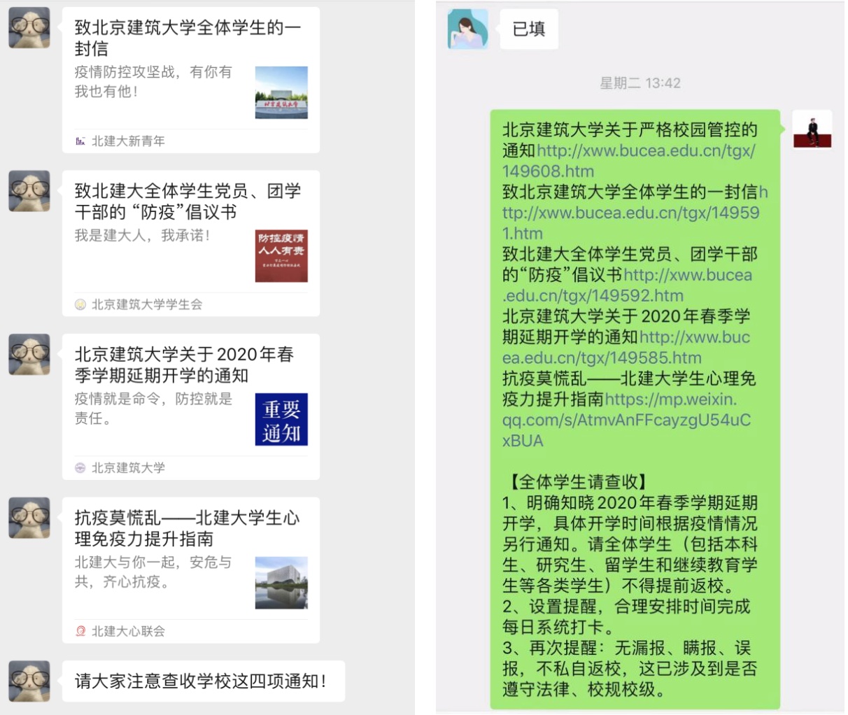 除了组织主题党日活动外,风景园林学研究生党支部还充分发挥党员的模范带头作用,在支部和班级之间积极宣传抗击疫情的新闻和公告,号召大家应减少外出,加强防护,同时也要利用假期时间查漏补缺,度过一个充实的假期。