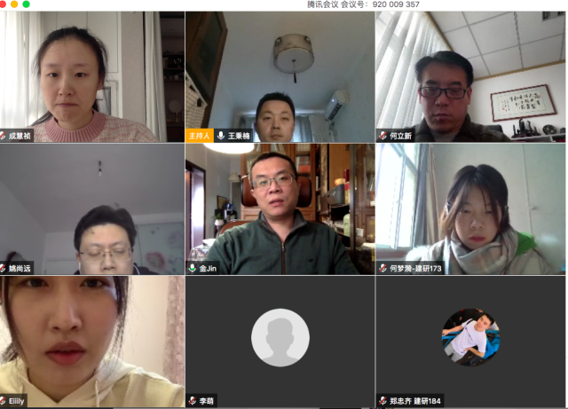 连线开始,王秉楠老师逐一关心了湖北地区研究生同学们的近况,同学们向院领导及老师汇报了平安,他们每天按照公司要求打卡、量体温,目前身体状况良好;针对近期线上教学,同学们提出了自己学业、发展、专业等方面的一些疑问;此外,同学们对于公司提供的口罩等物资表达了感谢。