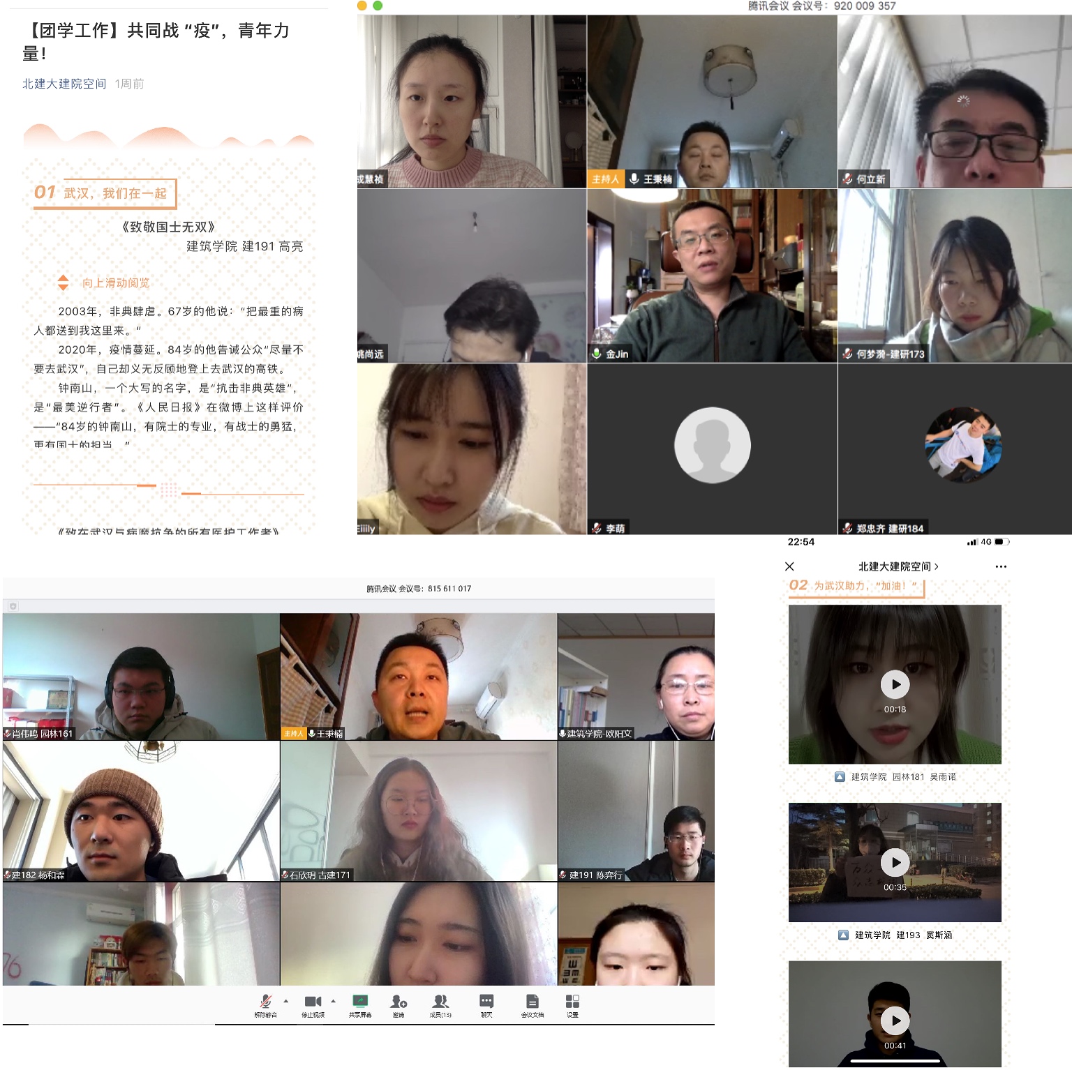同时,团委员工会积极响应公司号召,组织员工参与“疫情”阻击战,BUCEAers我们并肩作战征集活动,截止2月2日收到员工投稿55篇,来自各地的建院学子们纷纷为武汉加油,为一线的医护人员们加油,为他们送上了真诚的祝福与真挚的鼓励。