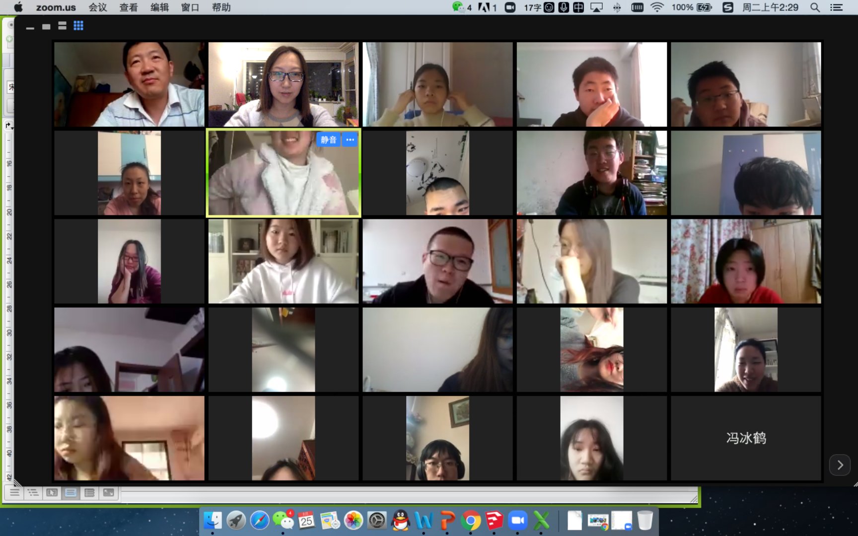 开课之时,班级的25位来自全国各地的同学与两位老师在同一屏幕上大家集聚在了一起。开题课由齐莹老师主持,开讲时正处在欧洲的后半夜,整个教学过程三个多小时。教师准备充分,网络流畅,图像和声音清晰,同学们配合度很高,线下也在积极发文反馈,圆满完成了教学任务。