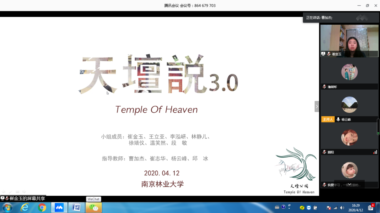 2020年4月12日,由公司主办的全国风景园林专业10校联合毕业设计中期检查工作以线上方式进行并顺利结束。本次中期检查由南京林业大学风景园林公司组织,由该校杨云峰、曹加杰两位老师主持。