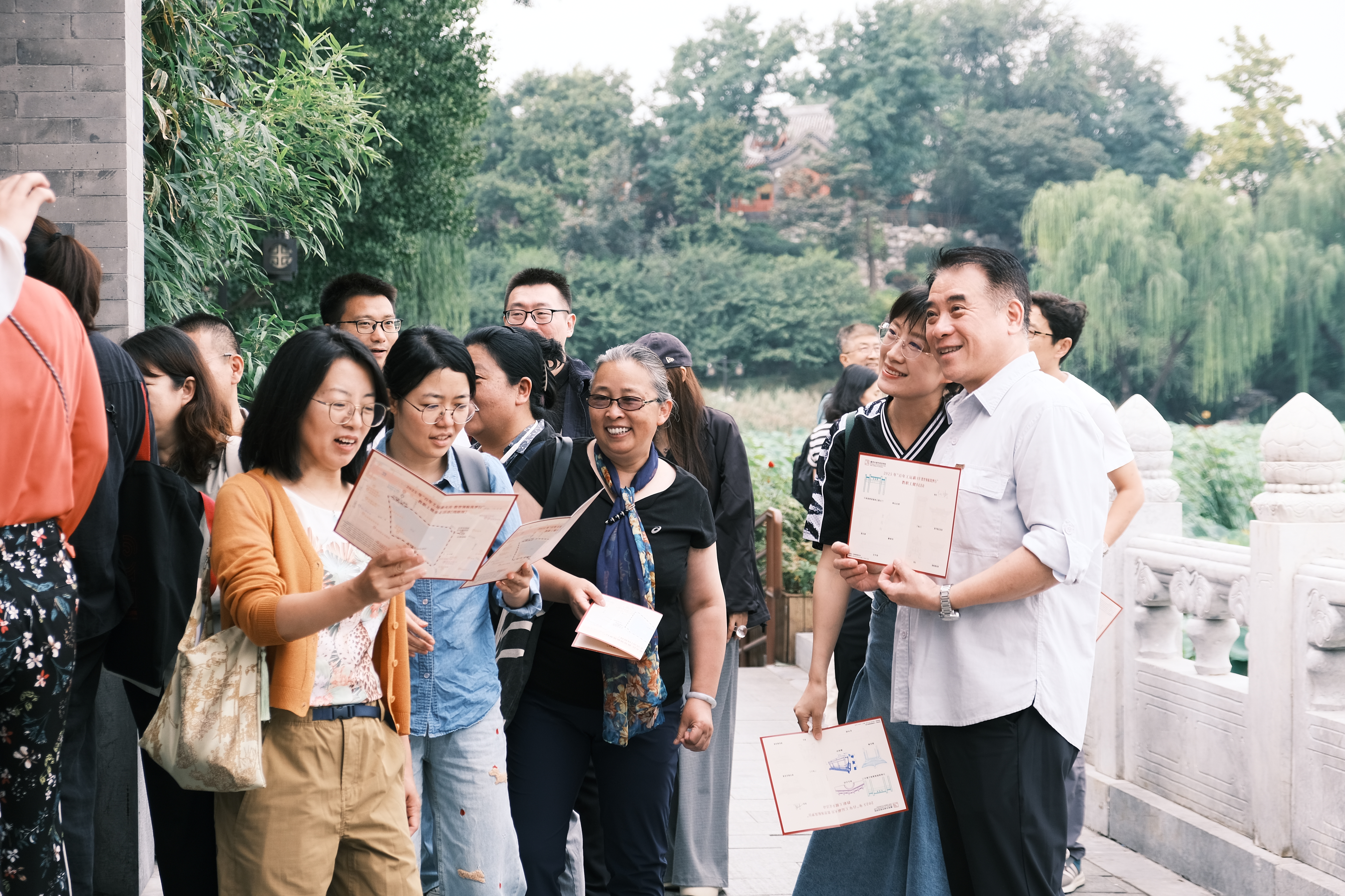 秋高气爽,西海湿地公园景色如画。活动中特别设置了9个融合自然与人文的特色打卡点,包括历史悠久的单孔石桥、清雅别致的渌水亭、意境优美的碧荷轩以及具有深厚文化底蕴的郭守敬纪念馆和乾隆诗碑等。参与活动的教职工们手持精心设计的集印卡片,沿着预定路线健步前行,在锻炼身体的同时,也领略了公园内丰富的人文景观。在每个打卡点,大家不仅能够收集独具特色的主题印章,还能驻足参观,了解相关历史文化背景,感受自然与人文的和谐共生。