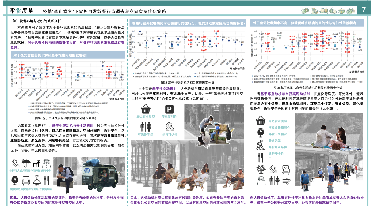 三等奖:研究生王鹭、叶隽怡、马超华、赵萌提交的调研报告《审食度势——疫情“禁止堂食”下室外自发就餐行为调查与空间应急优化策略》(指导老师:吕小勇)