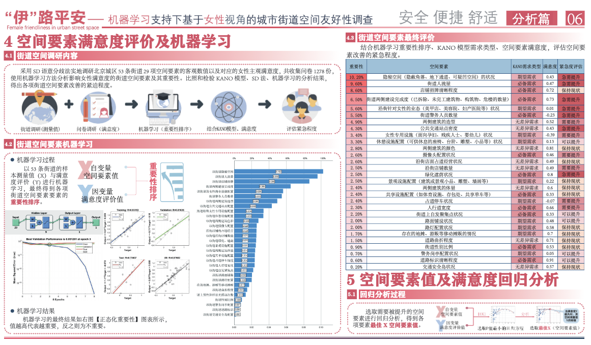 二等奖:本科生康牧铧、慕希雅、王研、李博涵提交的调研报告《“伊”路平安—机器学习支持下基于女性视角的城市街道空间友好性调查》(指导老师:杨震、李勤、吕小勇)