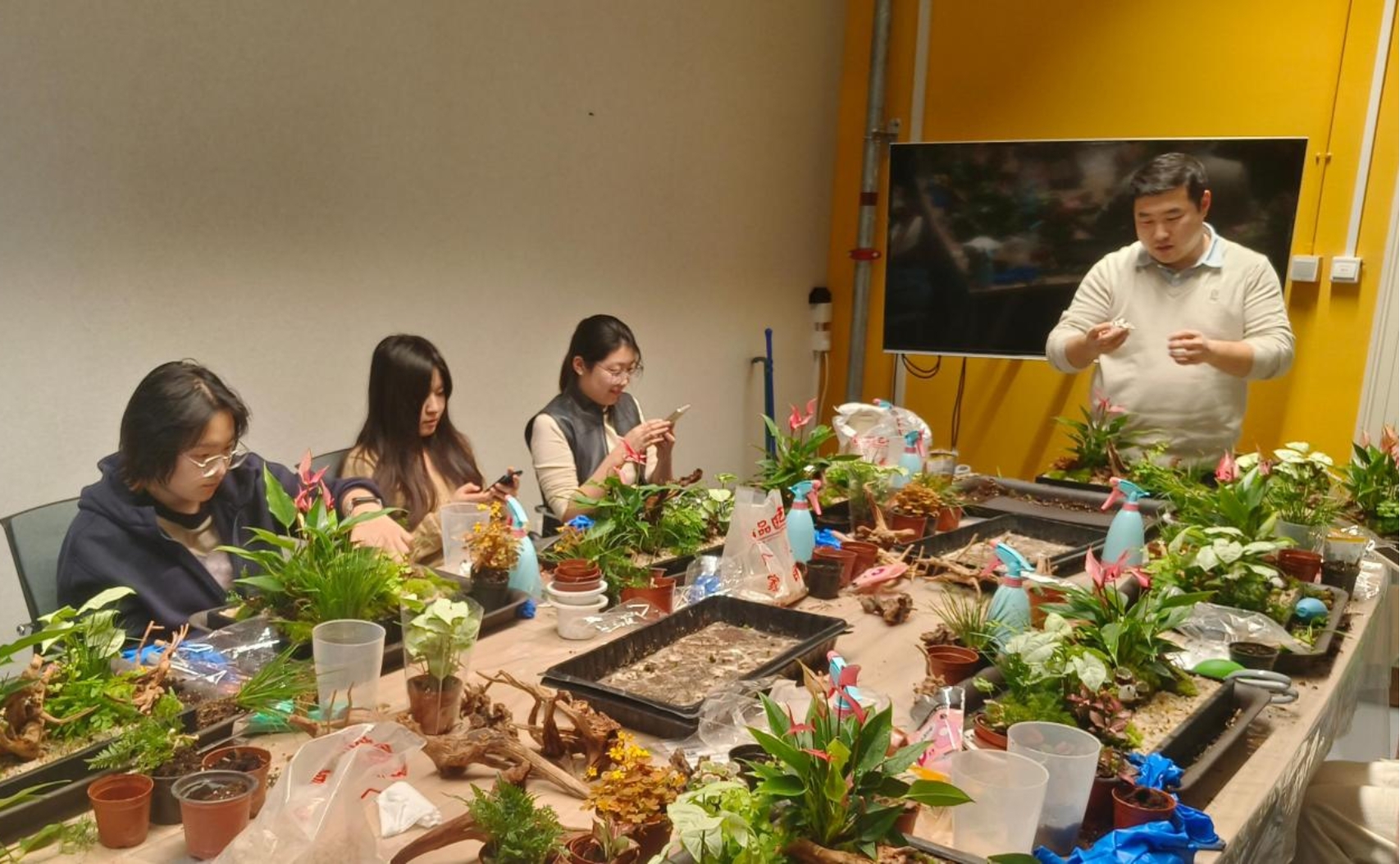 图2 李浩程老师带领员工进行盆栽创作实践