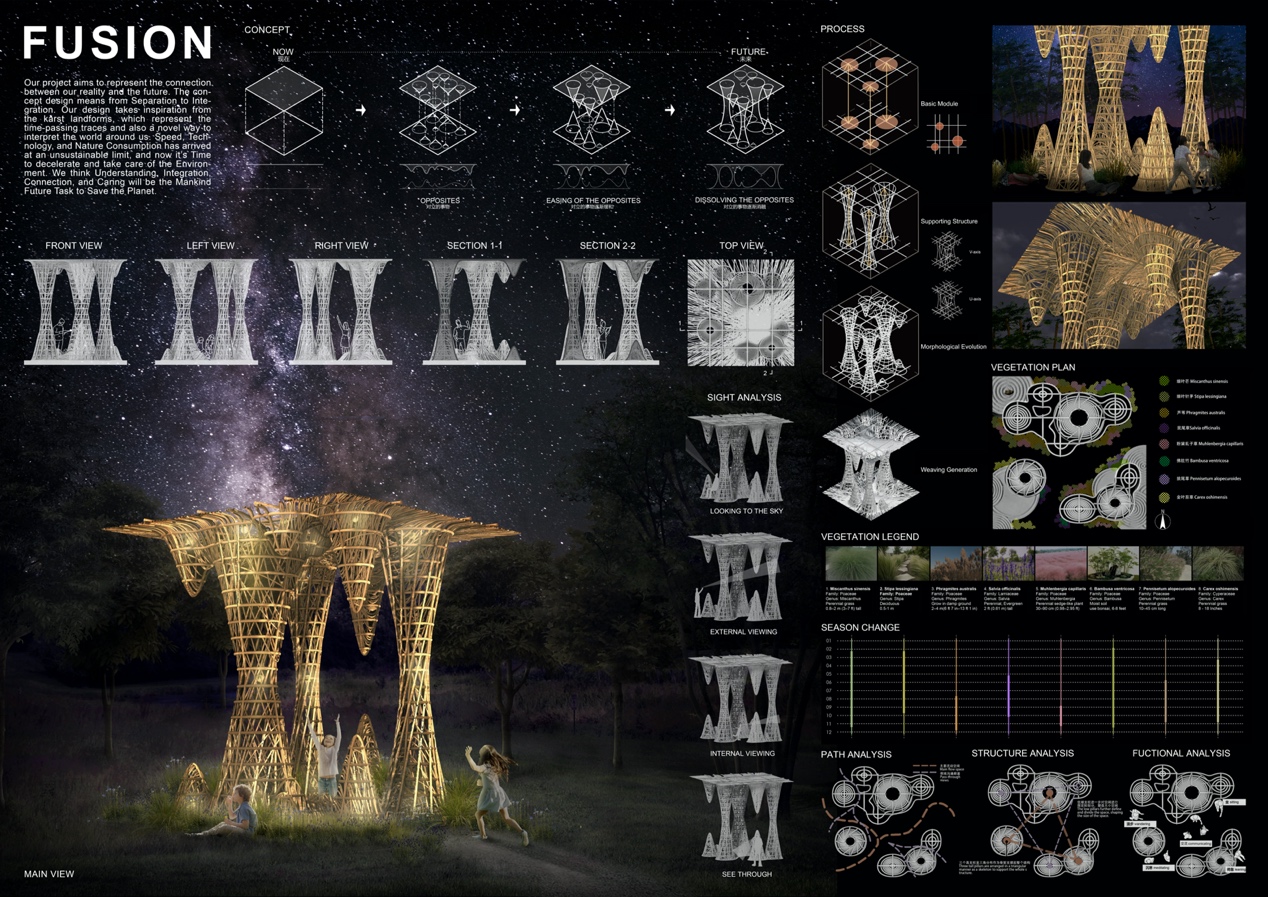 本次竞赛于2020年12月启动,竞赛主题为“未来的花园”。鼓励设计者在有限的地块内,以竹材和花卉为主要材料,设计并建造一座具有未来感的小花园。经过方案设计征集与评审、线上直播终评会、方案深化与施工图设计、现场建造、现场评审及展览等5个阶段,历时半年,231个国内外高校和单位的377份作品的激烈角逐,最终36个具有未来感的小花园落地建造。