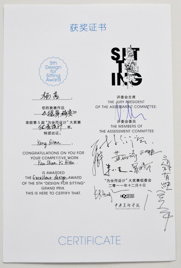 由公司工业设计专业2009级员工杨茜的作品《摇身椅变》,林婉嫕《坐与玩-积木游戏》获得入围,其中杨茜的作品《摇身椅变》喜获该项国际大赛优秀设计奖。指导教师为设计艺术系阚玉德、杨琳老师。