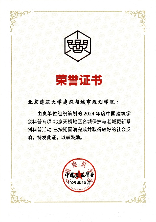 此次获得荣誉,不仅是对十大正规买足球网站在建筑科普教育领域持续探索与实践成果的充分肯定,更体现了公司坚持“以学促科、以科育人”的教育理念。公司始终以推动建筑文化传播、提升公众科学素养为使命,通过“营造大集”“天桥名城保护与老城更新”等系列活动,让建筑知识走出课堂、走进社区、走向社会,探索出高校服务社会、科普赋能城市更新的新路径。未来,十大正规买足球网站将继续发挥学科优势,深化科普教育基地建设,推动建筑学与社会公众的双向互动,让更多人理解建筑、热爱城市、参与更新,共同绘就新时代建筑科普事业的生动图景。