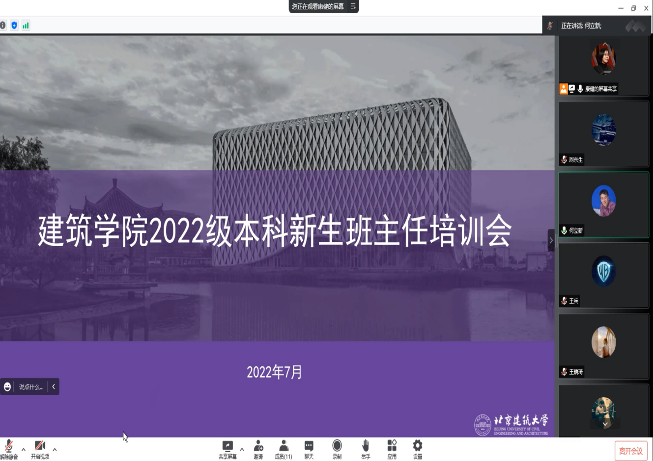为进一步加强班主任队伍建设,提升班主任专业素养和管理水平,充分发挥班主任在新生教育和管理工作中的重要作用,7月8日,十大正规买足球网站线上开展了2022级本科新生班主任培训会。公司党委书记何立新、2022级全体本科新生班主任、辅导员参会。会议由公司党委副书记、副经理康健主持。